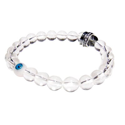 邪気を払うとされる“目”のモチーフが印象的。水晶とジルコニアが輝く、上品で神秘的なブレスレット。 -