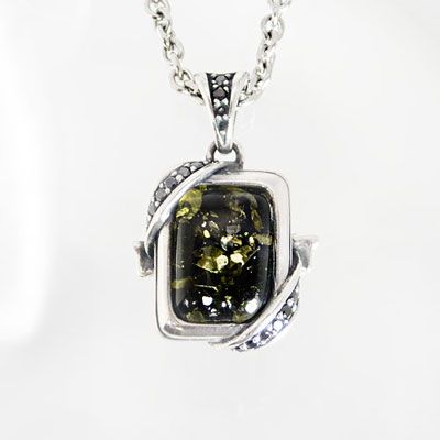 幸福の石グリーンアンバーを使用した上級モデルのペンダント。聖なる布でストーンを包み、ブラックジルコニアで装飾された贅沢な逸品です。 -