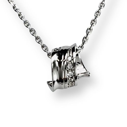 シンプルながら存在感のあるスクロールリングペンダント。流れるような曲線が美しく、シルバーの輝きが胸元を上品に演出します。 -