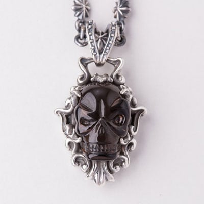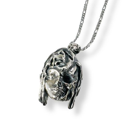 メメント・モリ「自分が(いつか)必ず死ぬことを忘れるな」という意味の警句。顔半分の皮を剥して頭蓋骨を見せる驚愕なデザインのスカルマリアのペンダントです。 -