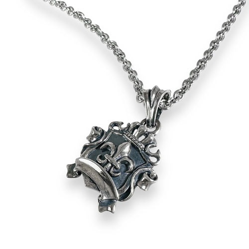 太陽神アポロから女神アテナに与えたエイジスの盾。キリスト聖骸布とクラウンを組み合わせ、FatimaDesignテイストに仕上げたペンダント。シールド内のデザインはフレアとクロスの二種類を用意しました。 -
