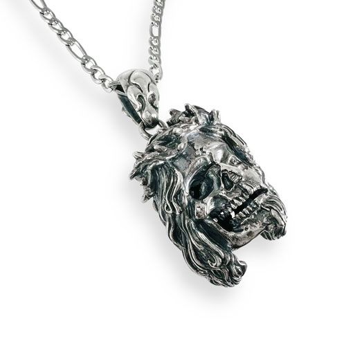 メメント・モリ「自分が(いつか)必ず死ぬことを忘れるな」という意味の警句。顔半分の皮を剥して頭蓋骨を見せる驚愕なデザインのスカルジーザスのシルバーペンダント。 -